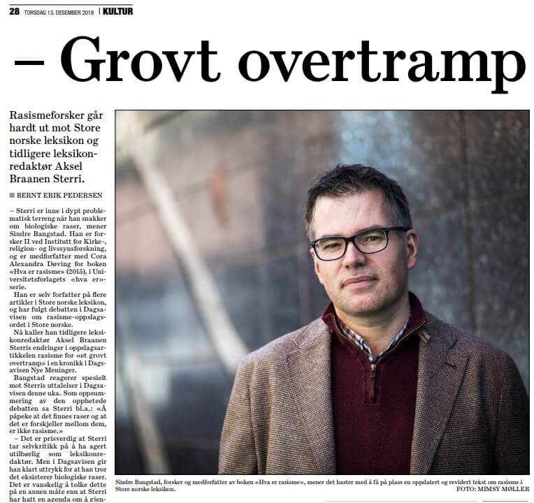 Dagsavisen: Rasismedebatt om Store norske leksikon (06.12.18)