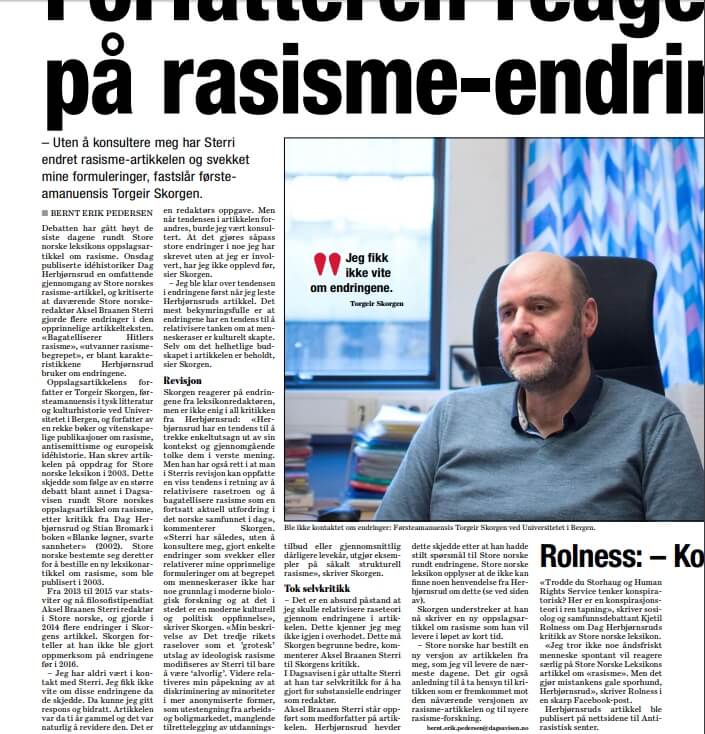 Dagsavisen: Forfatteren reagerer på rasismeendringer (07.12.)