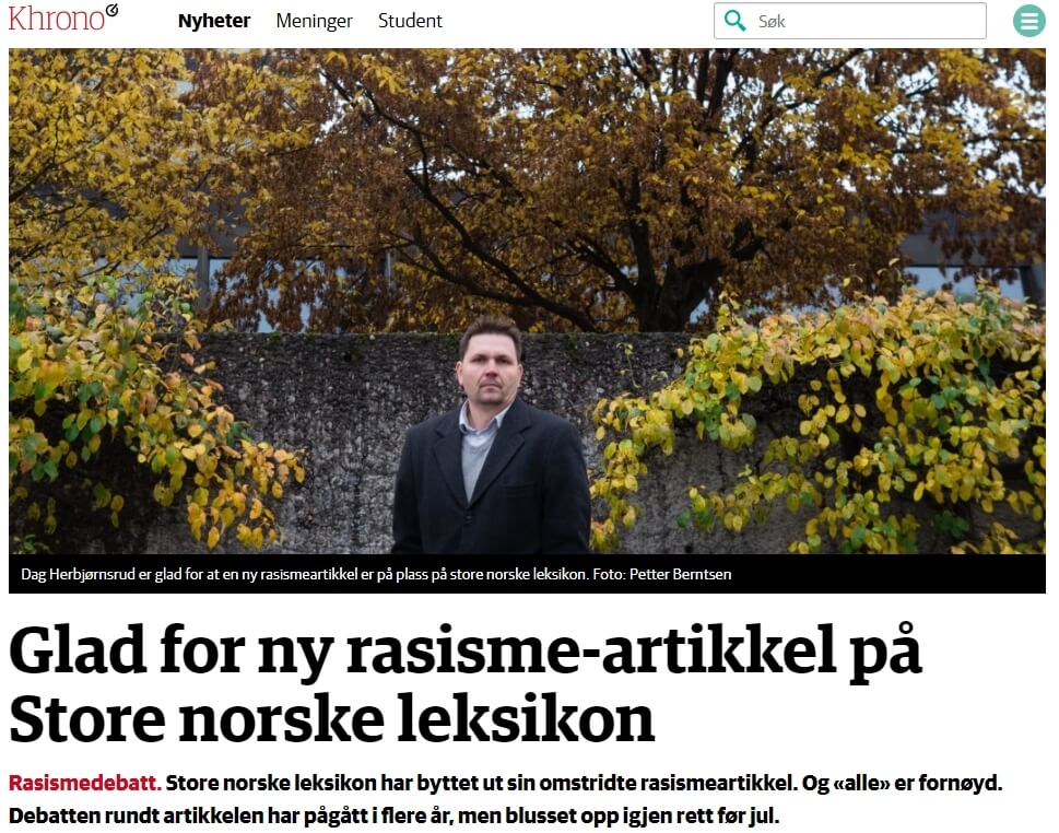 NB! Oppslag i Khrono 26. januar 2019: Glad for ny rasismeartikkel i Store norske leksikon