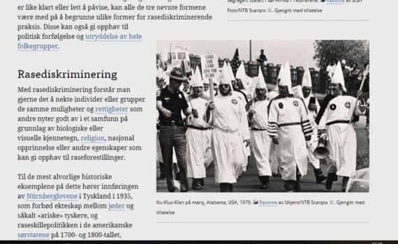 Her er mediedekningen av debatten om rasismeartikkelen i Store norske leksikon, fra 5. desember 2018 til d.d.. Nederst: Skjermbilder fra sosiale medier. NB! 20. desember 2018 ble rasismeartikkelen i Store norske leksikon (SNL) omskrevet, siste endring gjort 29.12.18. De oppførte medforfatterne er nå Torgeir Skorgen, Ingunn Ikdahl og Mikkel Berg-Nordlie (1982-1988: Axel Sommerfelt. 1988-98: Sommerfelt og Sigurd Skirbekk. 1998-2003: Skirbekk. 2003-2016: Skorgen. 13.06.2016-19.12.18: Skorgen og Aksel Braanen Sterri, som gjorde […]