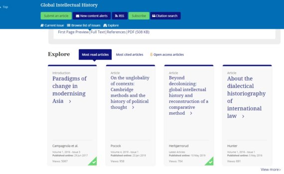 The article «Beyond decolonizing: global intellectual history and reconstruction of a comparative method» by Dag Herbjørnsrud, published in the journal Global Intellectual History (May 10 2019) has, in September 2020, an attention score of 96: «Altmetric has tracked 15,773,921 research outputs across all sources so far. Compared to these this one has done particularly well and is in the 98th percentile: it’s in the top 5% of all research outputs ever […]